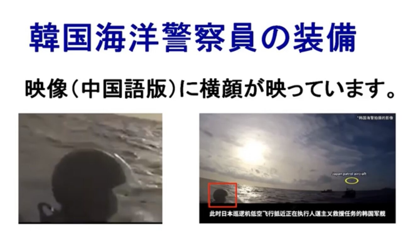 救助活動なのに韓国軍艦は国旗を掲揚していない。韓国の映像には環境音(波音など)が無い為after recording。自衛隊側の映像に潜水艦の潜望鏡らしきものが写っている。etc.