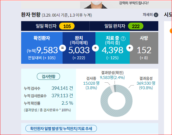 この日の新規完治者は222人で、新規感染者は105人である。また累積死者数は152人となっている。