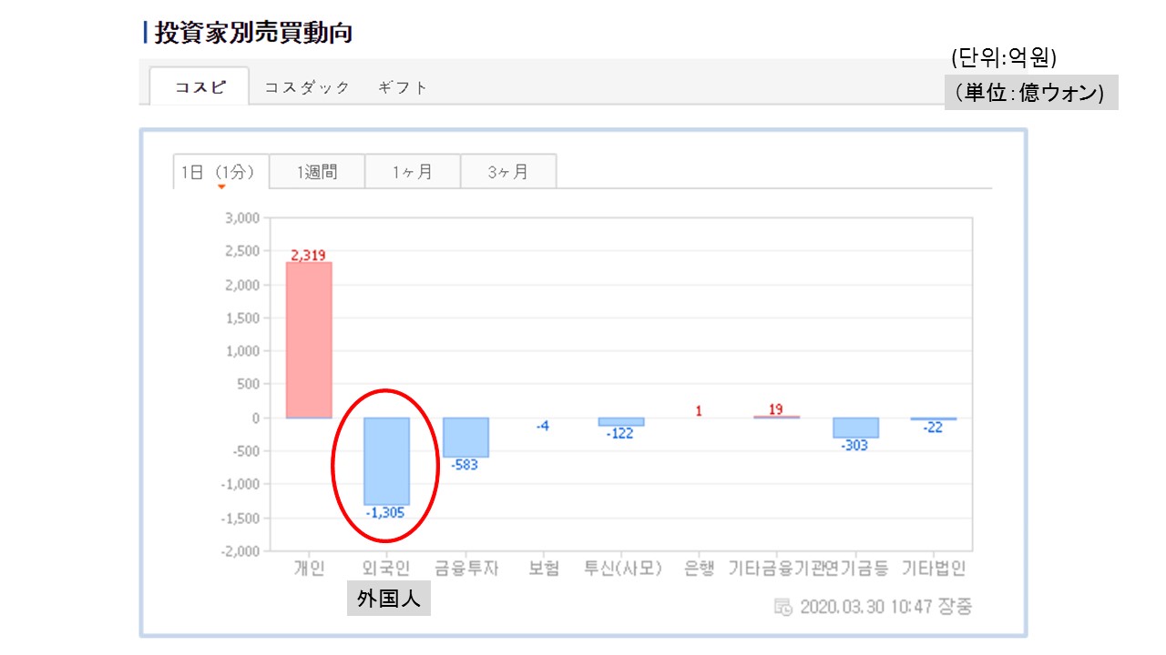 外国人投資家の売り攻勢はすさまじいもので、2020年03月30日、韓国メディア『毎日経済』に「金融危機よりも激しい外国人売り…『さらに売り』も」という記事が出ました。