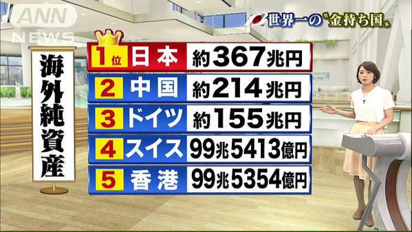 日本も100億ドルやそこらの拠出くらいはなんとでもなるだろうけど、それでは必要額の1%にも遥かに及ばない。手の施しようがないね。しかし考えてみたら日本の対外純資産額って