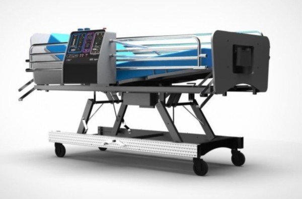 人工呼吸器の本体部分はベッドの手すり部分などに固定できるようになっており、バッテリーで駆動するダイソンのデジタルモーターを駆動して動作するとのこと。