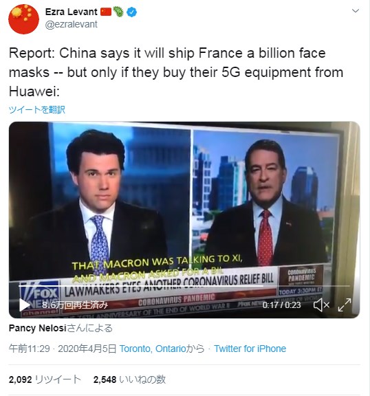 「フランスの政治家がアメリカにマスクを取られたと主張 ←虚偽だと米は反論」