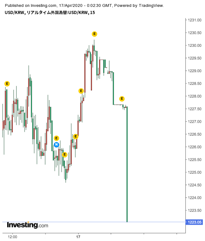 ウォンが弱すぎて話にならん昨晩は1230にタッチ出来なかったんですね。今の韓国ここがラインなのかな?