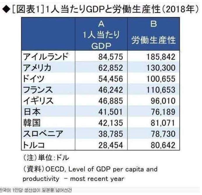쪽바리 넷우익 : 한국 경제는 파탄 → 1인당 GDP 역전
