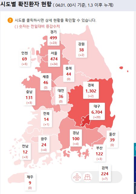 大邱と首都圏で病院内の集団感染が次々と確認されており、海外の流入も着実につながって累積確定患者は9千976人と集計された。
