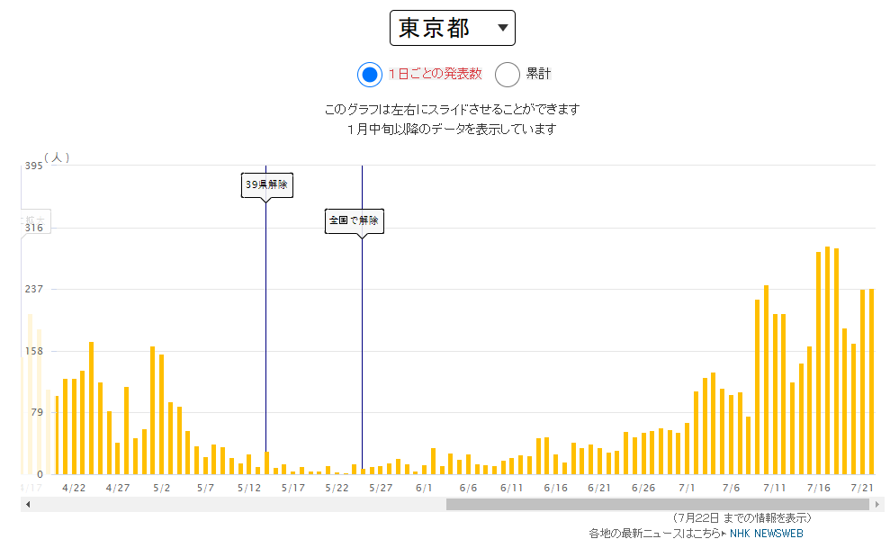 東京の最高は210人くらい?19日までの新型コロナ肺炎死亡者数