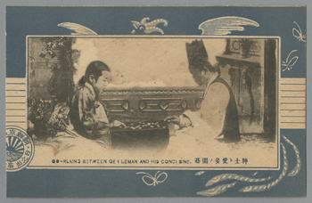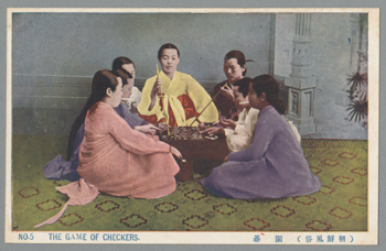 下の写真の1枚に「紳士ト愛妾ノ碁」と書いている。もう1枚には、妓生がみんなで遊んでいるのか、囲碁のルールを勉強しているようにも見える。